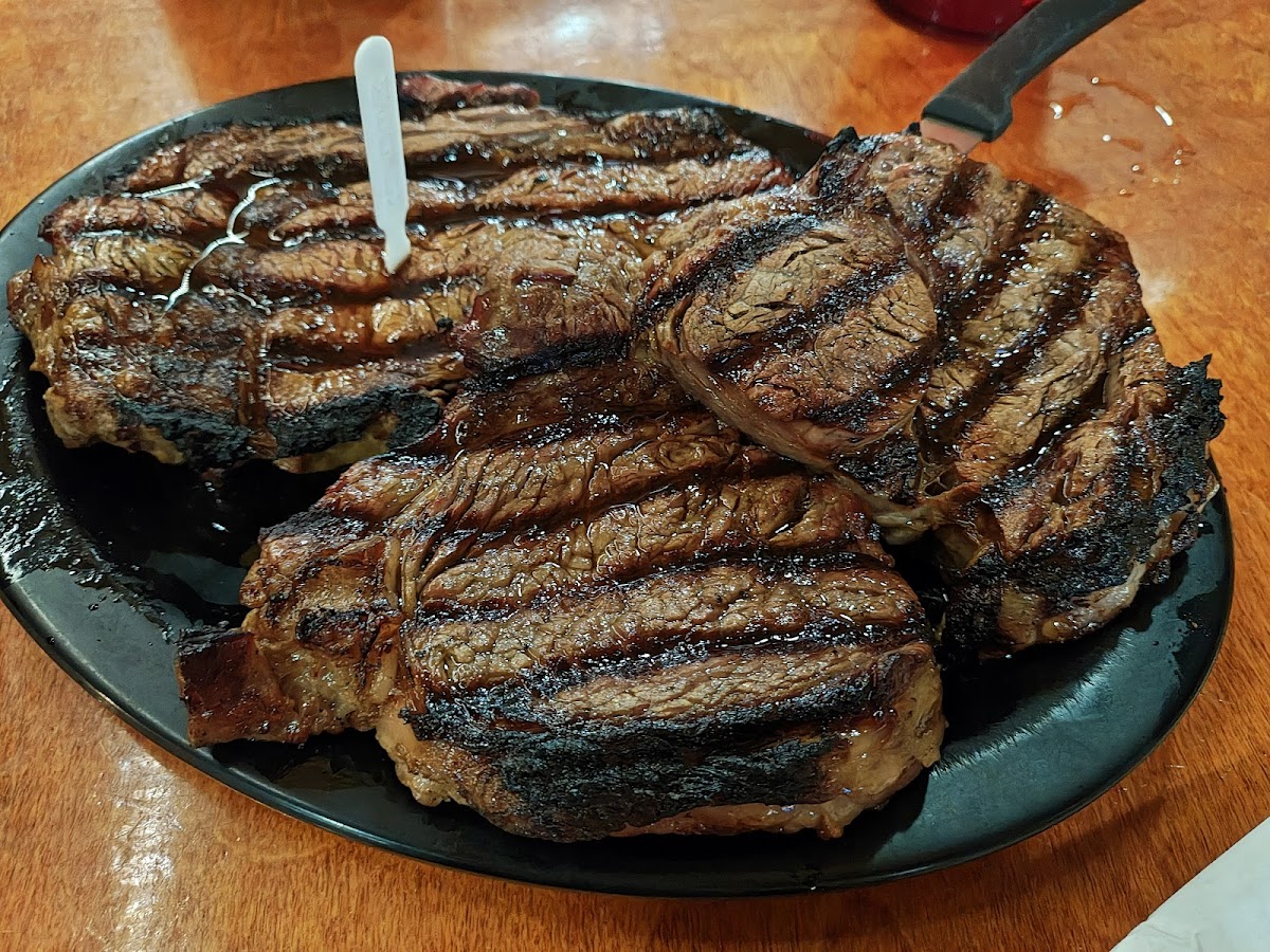 I've had many steaks in my life, many upwards of 200$ or more, but this place. Oh my, this place had the best food I have ever had in my 27 years of life. The placed looked sketchy and abandoned, but I am so glad we stopped to eat. Great waiter and very juicy huge steaks for a sweet price. TRY IT!!!